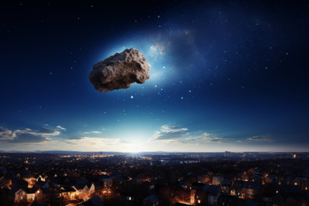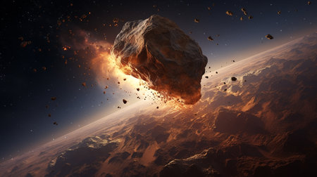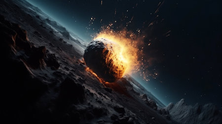 Generative ai on theme of big meteorite falling to the ground against starry sky in deep dark space