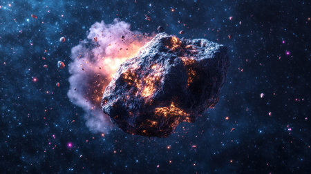 Floating asteroids colliding in a vast cosmic expanse create a breathtaking scene filled with dynamic movement and celestial beauty