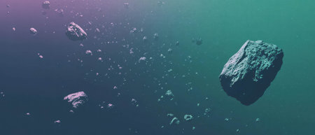 3D illustration of asteroids or meteors in space. Science fiction 5K visualization. High quality realistic render.