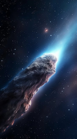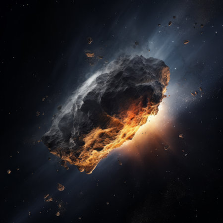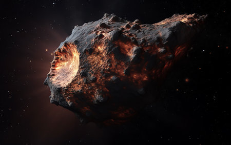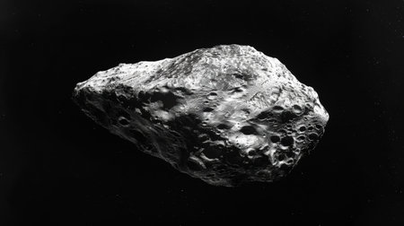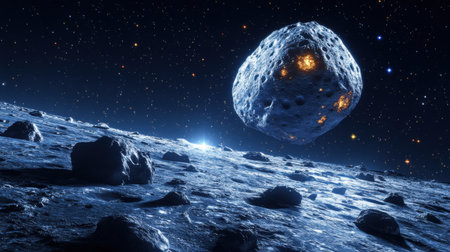 Celestial Rock A Large Asteroid Adrift in the Outer Darkness of Space, Emitting Cosmic Radiance