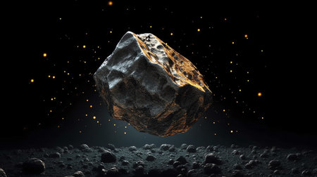 Exploring the unique texture and metallic sheen of a meteorite in a cosmic environment