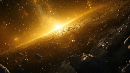 Stunning view of an asteroid belt with massive floating rocks and cosmic dust. Generative AI