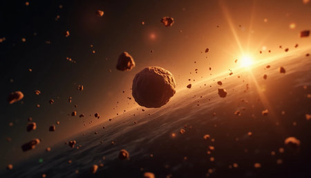 Numerous asteroids orbiting near a brilliant star create a stunning cosmic scene, highlighting the beauty of the universe and the mysteries of deep space exploration
