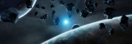 Asteroid belt. Meteorites. Deep space image, science fiction fantasy in high resolution ideal for wallpaper and print.
