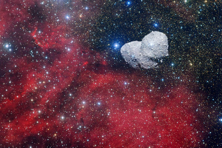 Cosmic Meteor Field with Asteroids and Nebulae in Deep Space