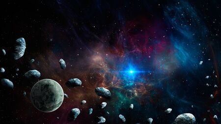 Meteorites pieces from the moon with starlight Deep space image, science fiction fantasy ideal for wallpaper and print. Elements of this image furnished by NASA