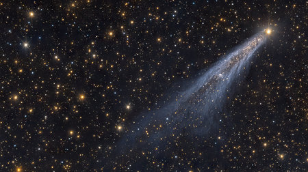 A breathtaking comet streaks across the inky blackness of space, its tail a luminous river of gas and dust.