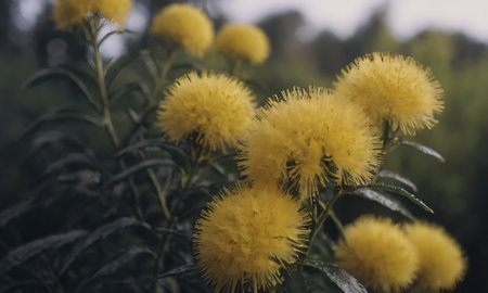 Close up of yellow mimosa flowers in full bloom, natural floral background
