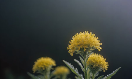 A blurred background of yellow wildflowers with copy space, captured using a Canon EOS R5 mirrorless camera and EF lens. The photograph was taken in the morning light, with a shallow depth of field that highlights individual flowers while gently blurring out small green leaves and grasses in the foreground. This image is suitable for use as an elegant spring or summer background on web pages, graphics, banners, cards, and more, with high resolution and quality. --ar 27:10 --v 6.1 Job ID: 90e8c25b-0472-4af4-a766-5e328046027c