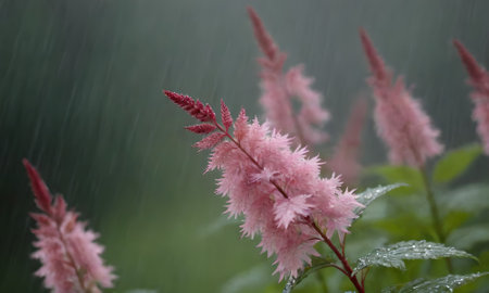 nice soft pink decorative blossom plant (astilba) growth in garden. macro