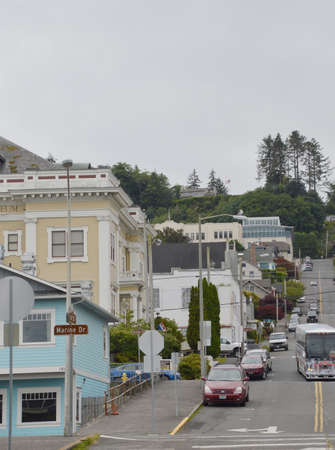 Houses and view of San Francisco Bay in San Francisco, California, USA