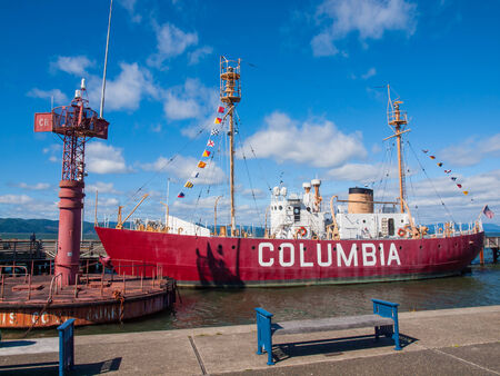 Columbia Lightship and Modern Navigational Buoy in Astoria Oregon USA on a Clear Day