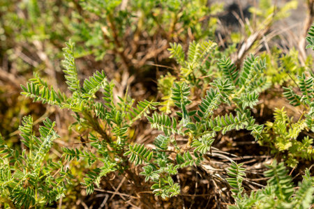 Saint Gallen, Switzerland, August 18, 2025 Astragalus Sempervirens plant at the botanical garden