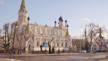 Vladimir, Russia - May 08, 2022: Vladimir City Center. The temple at the central highway