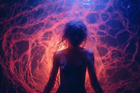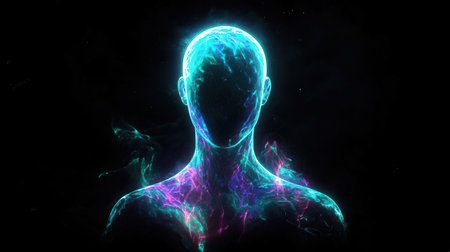 ?yber space concept of glowing astral body silhouette neural network AI generated art. Created with Generative AI technology