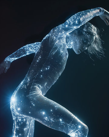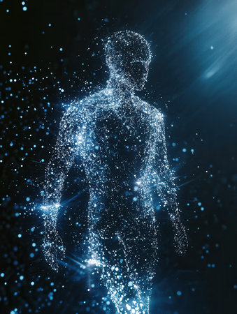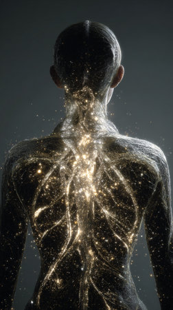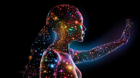 Digital Illustration of a Female Body with Glowing Particles on her Body