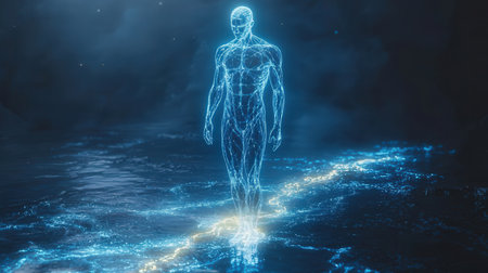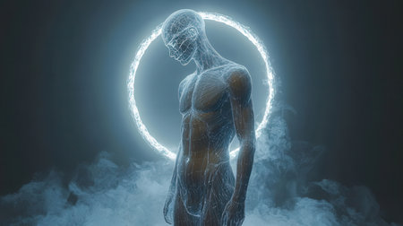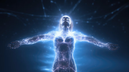 Digital Illustration of a Human Body with a Glowing Light Background