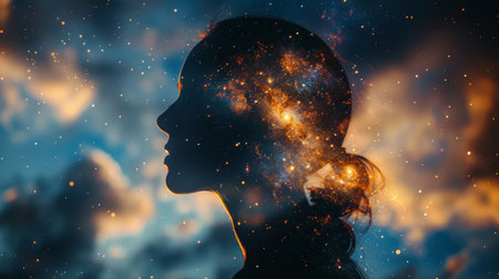 Silhouette of woman with universe background