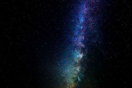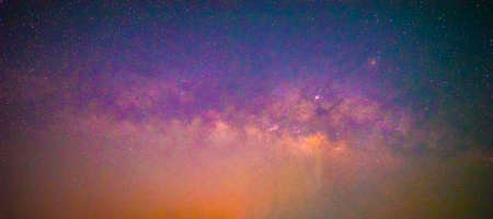 Beautiful panorama view universe space of colorful milky way galaxy with stars on a night sky, Space background, Long exposure photograph with grain or noise - Image
