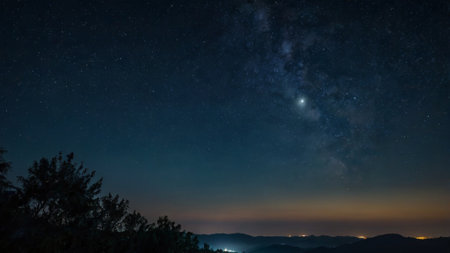 Vibrant night sky filled with countless stars overlooking a tranquil landscape