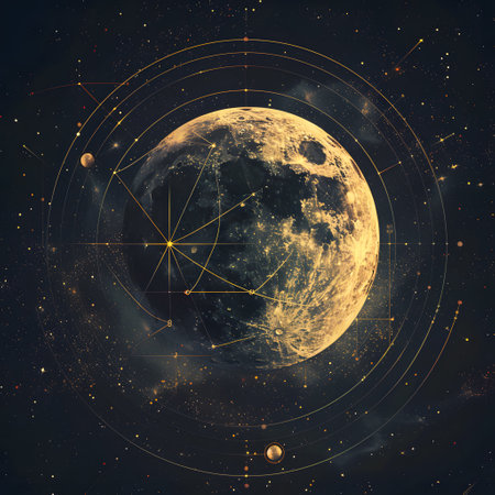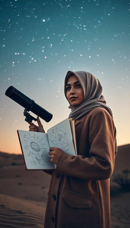 An intricate display of celestial bodies and ancient tools showcasing the wonders of the universe.