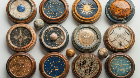 Zodiac horoscope symbols with solar system planets stones.