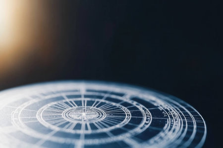 futuristic armillary close-up illustration, zodiac signs and names, months and degrees (3d render)