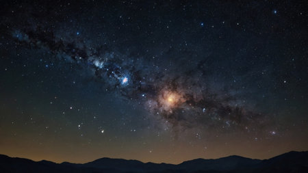 Milky way over the mountains at night with stars in the sky