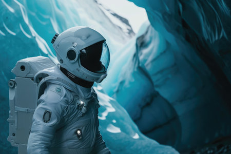 A Man in a Space Suit Standing in Front of a Blue Background
