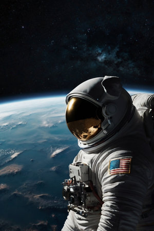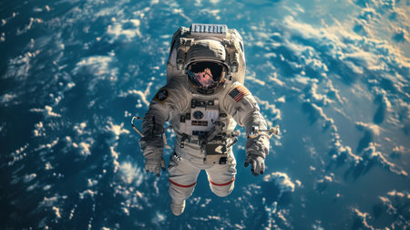 Astronaut in a space suit in outer space.