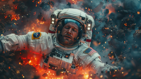 An AI generated illustration of an astronaut in a full space suit floating in the depths of space