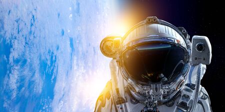 astronaut in outer space on the background of planet earth. Astronaut in a spacesuit in space.