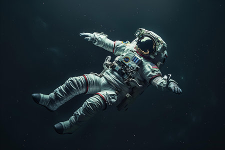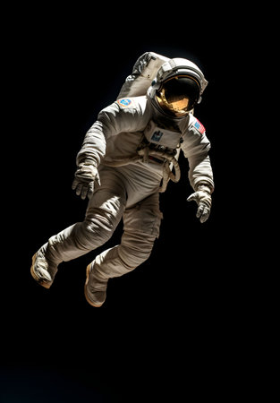 Astronaut Space Suit isolated while floating on black background