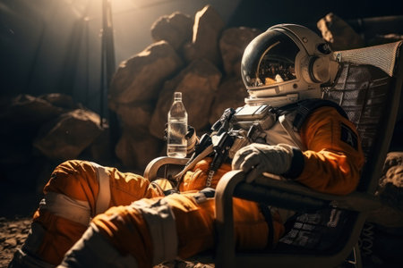 Astronaut with beer on another planet. The concept of unlimited relaxation. Generative AI