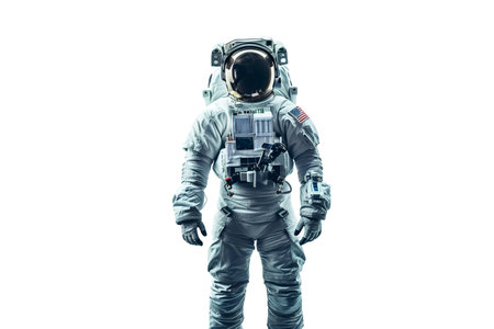 Detailed full-length shot of an astronaut in a spacesuit isolated on a white studio background