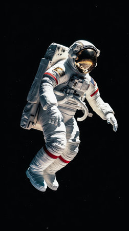Astronaut Space Suit isolated while floating on black background