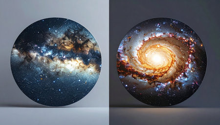 A conceptual diptych showcasing two perspectives of the cosmos.