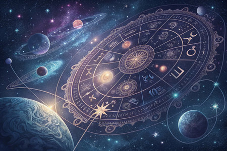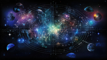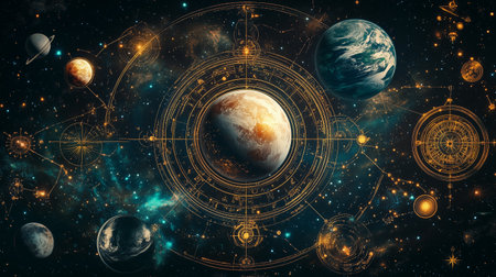 Astrological and astronomical cosmic background featuring stars and planets in space