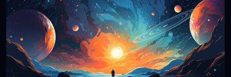 deep space multicolor nebula stars and planets