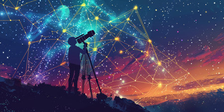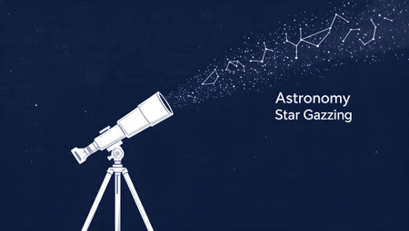 Illustration of a telescope pointing at the night sky, perfect for astronomy, science, and education themes.