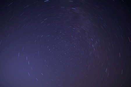 Stars move around the pole star at night. long exposure. Dark blue background and colored lines in a circle