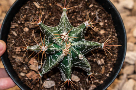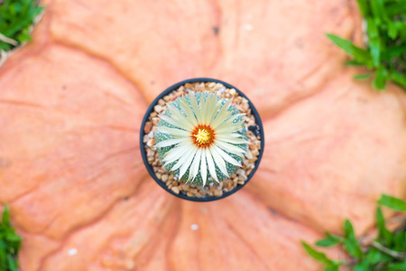 cactus in the flower pot or Astrophytum or Astrophytum asterias or succulent
