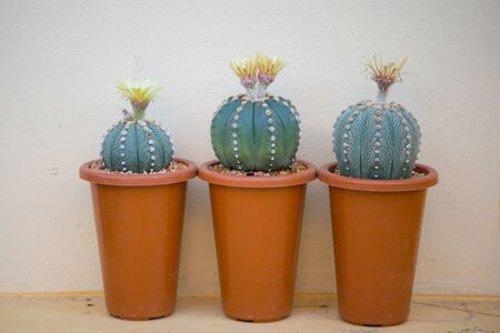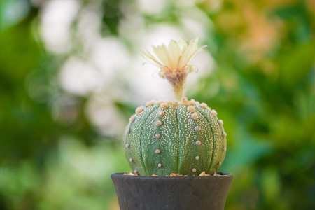 Astrophytum asteriias flower or cactus in the flower pot or Astrophytum or Astrophytum asteriias plant