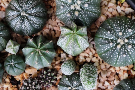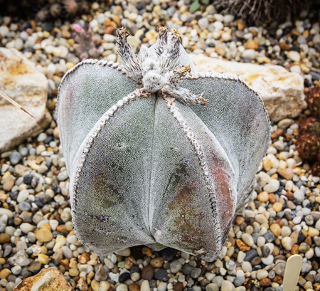 Cacti Astrophytum myriostigma - thornless cactus with white arola in the botanical collection
