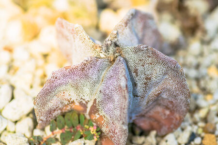 Astrophythum asterias nudum or sand dollar cactus, sea urchin cactus, star cactus and star peyote.