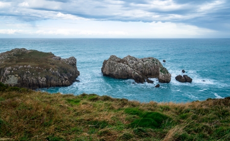 Big cliff islands in Cantabria, Spain.