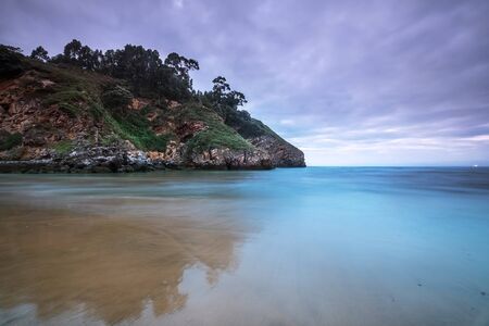 Cloudy sunrise on the coast of Liencres, Santander. Calm sea landscape in broken coast, in the north of Spain