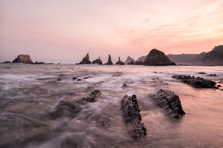 Buelna Beach, Asturias, Spain. Rock formations in the Cantabrian Ocean