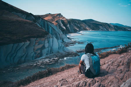 Monte Ulia in the city of San Sebastián, Basque Country. Visit the hidden cove of the city called Illurgita Senadia or Illurgita Senotia. A young woman arriving at the cove of mount ulia