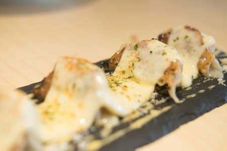 Gyoza dumplings bake cheese, close up